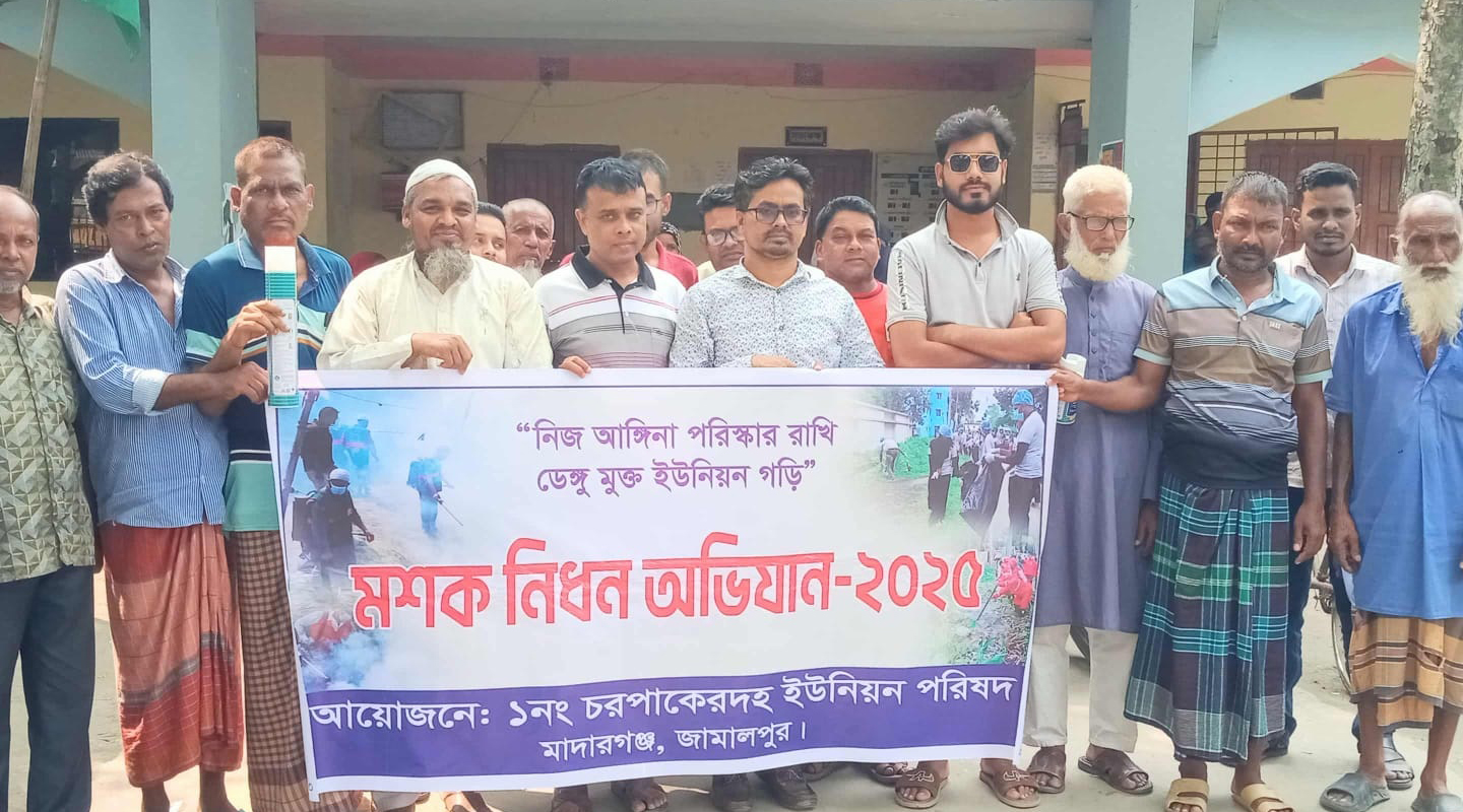 “নিজ আঙ্গিনা পরিষ্কার রাখি, ডেঙ্গু মুক্ত ইউনিয়ন গড়ি”— এই প্রতিপাদ্যকে সামনে রেখে জামালপুরের মাদারগঞ্জ উপজেলার চরপাকেরদহ ইউনিয়নে মশক নিধন অভিযান-২০২৫ উপলক্ষে এক বর্ণাঢ্য র্যালি অনুষ্ঠিত হয়েছে। চর পাকেরদহ ইউনিয়ন পরিষদের আয়োজনে বুধবার (৮ অক্টোবর) সকাল ১০টায় ইউনিয়ন পরিষদ চত্বর থেকে র্যালিটি শুরু হয়ে বিভিন্ন সড়ক প্রদক্ষিণ শেষে একই স্থানে এসে শেষ হয়। র্যালিতে ইউনিয়ন পরিষদের প্রশাসক, বৈষম্য বিরোধী ছাত্র, আন্দোলনের প্রতিনিধি, স্থানীয় জনপ্রতিনিধি, ইউনিয়ন পরিষদ সদস্য, শিক্ষার্থী ও সচেতন নাগরিকরা অংশগ্রহণ করেন। অনুষ্ঠানে বক্তারা বলেন, ডেঙ্গু প্রতিরোধে নিজ আঙিনা, বাসাবাড়ি ও আশপাশের পরিবেশ পরিষ্কার রাখা অত্যন্ত জরুরি। শুধু সরকারি উদ্যোগ নয়, জনগণের সচেতনতা ও অংশগ্রহণই ডেঙ্গুমুক্ত ইউনিয়ন গড়তে পারে।